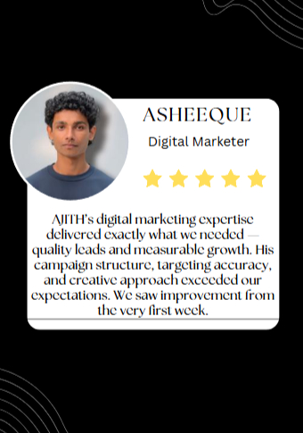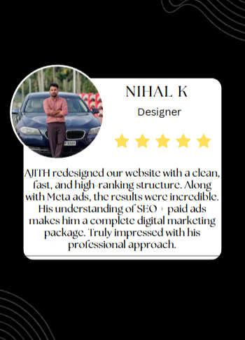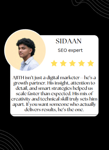 Hello, I’m Ajith, a leading freelance digital marketer in Malappuram known for combining organic and paid marketing expertise with a strong creative and technical approach. With one year of hands-on experience, I specialize in building high-ranking websites that are visually striking, fast, and tailored for real business growth.